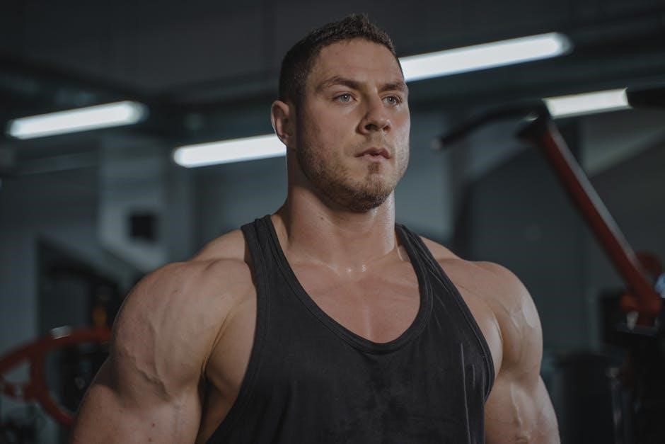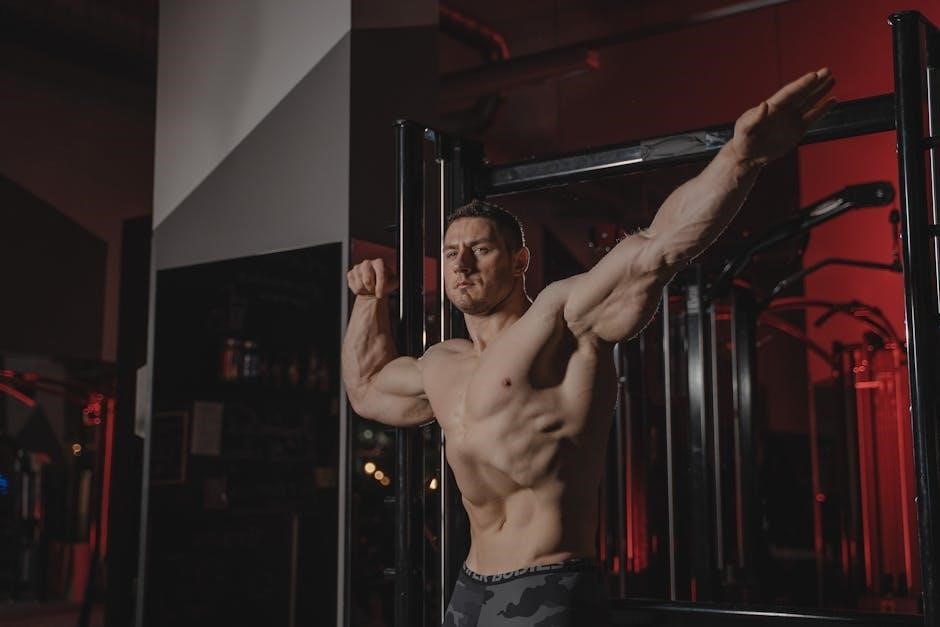 The PDF provides a detailed schedule, outlining specific exercises, sets, reps, and cardio recommendations. It’s a robust program requiring commitment and discipline to maximize results.